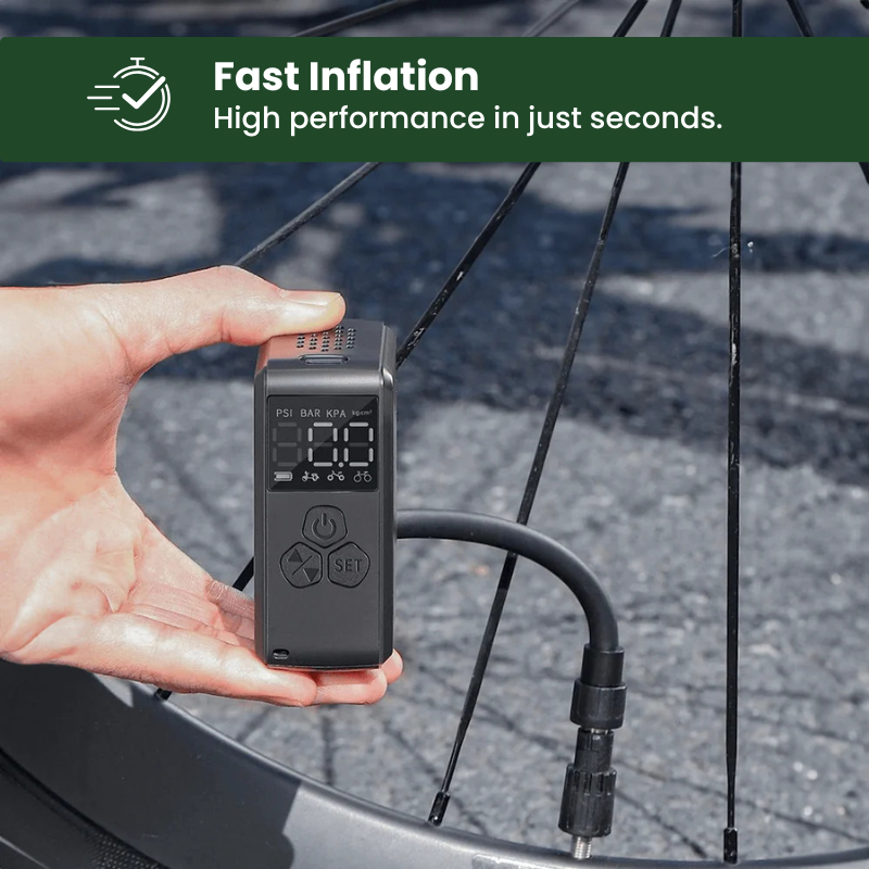 Niente più pompaggio manuale o compressori ingombranti. Grazie alle potenti prestazioni racchiuse in un design compatto, questa pompa d'aria elettrica garantisce un gonfiaggio ad alta velocità esattamente quando ne avete bisogno, sia che stiate andando in bicicletta, viaggiando o avventurandovi all'aperto.