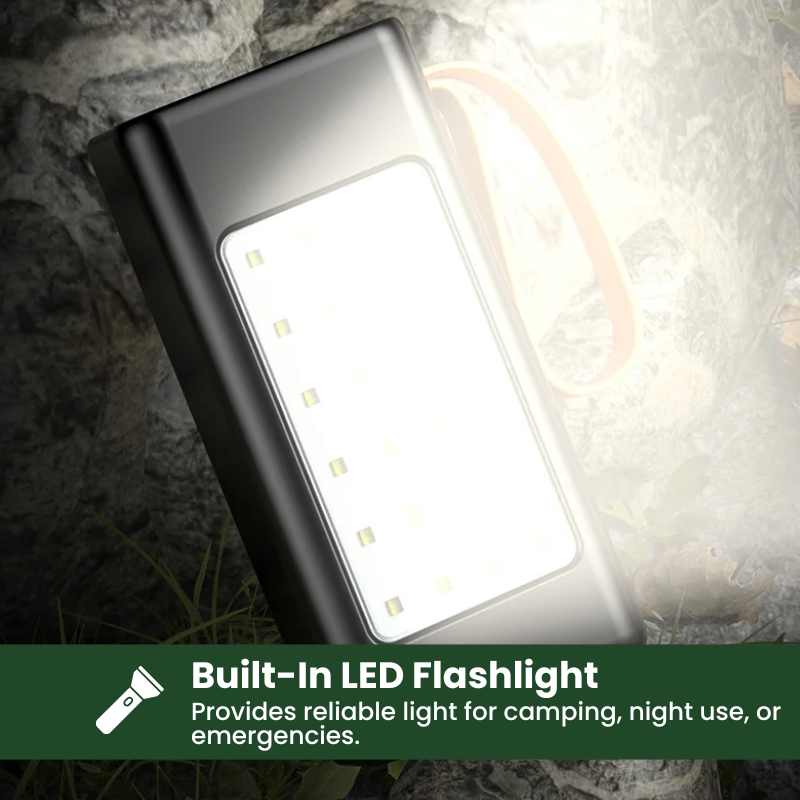 Che si tratti di accamparsi dopo il tramonto, di percorrere un sentiero di notte o di affrontare un'interruzione di corrente inaspettata, la torcia LED integrata assicura che non si rimanga mai al buio.