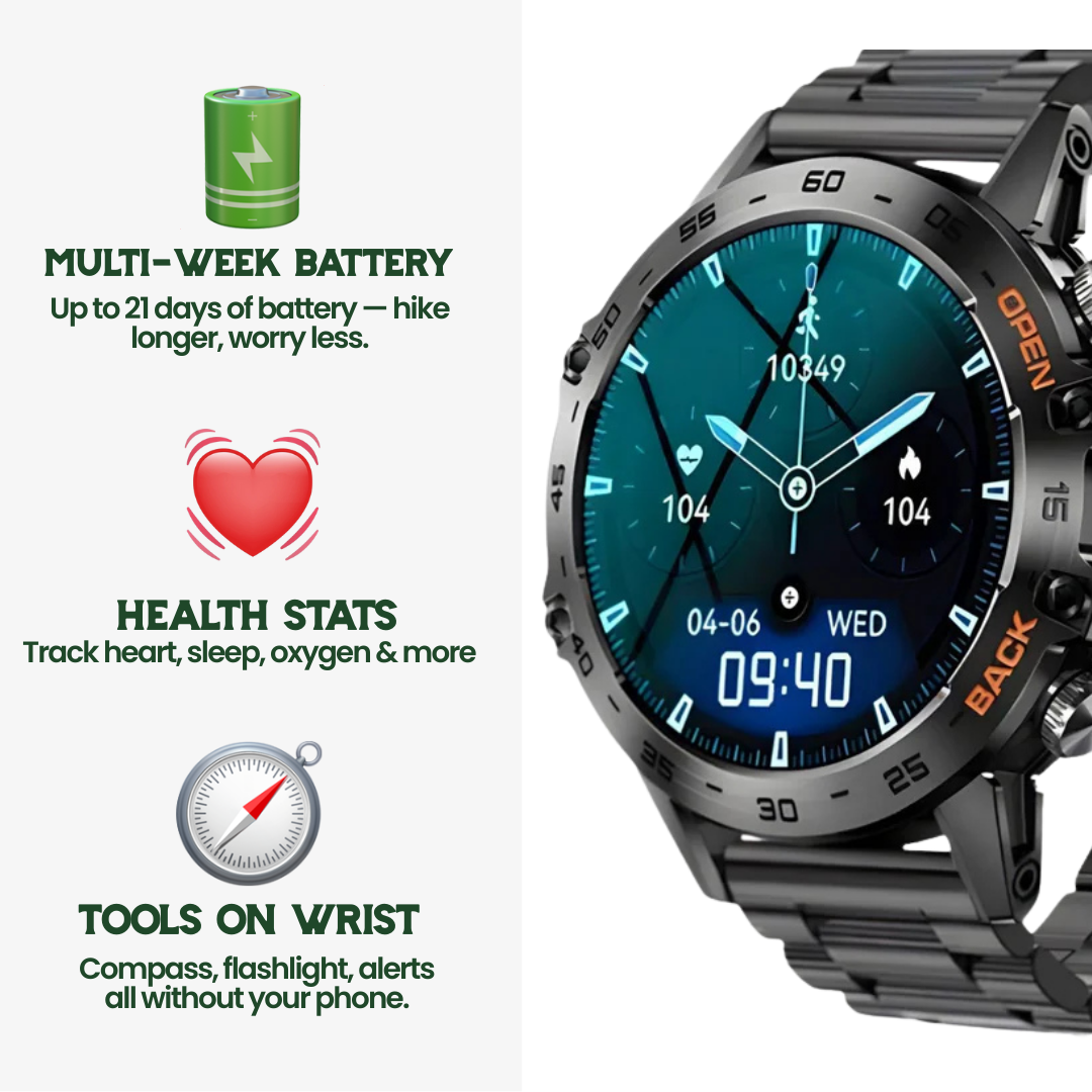 Ultra-rugged steel–titanium mix resists dirt, dust, water, and impact. Designed for extreme durability, it keeps performing no matter where your adventures take you.